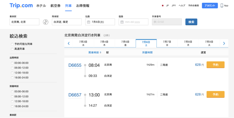 その結果、北京南駅から白洋淀駅まで新幹線で行けることがわかりました。