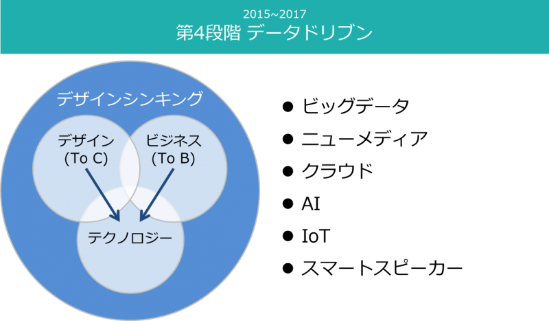 私の認識では、正しい意味でのUXとはそういうものであり、表面的なUIの段階ではなく、ビジネス視点、テクノロジー視点との融合は必要だと思っています。しかし、それが一段階目であり、10年も前の考え方だというのです。日本でも、UXと呼ぶ際にここまで十分に考えられていないケースはまだ多く存在します。